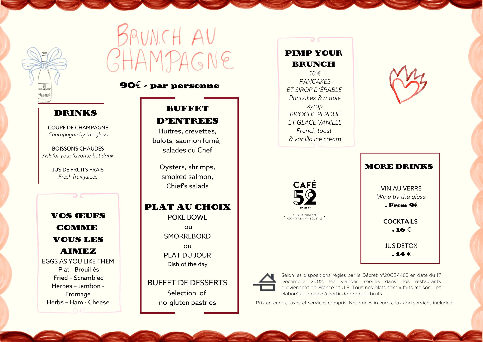 Menu Café 52 Menu Bar Menu Petit-déjeuner MENU BRUNCH Réserver